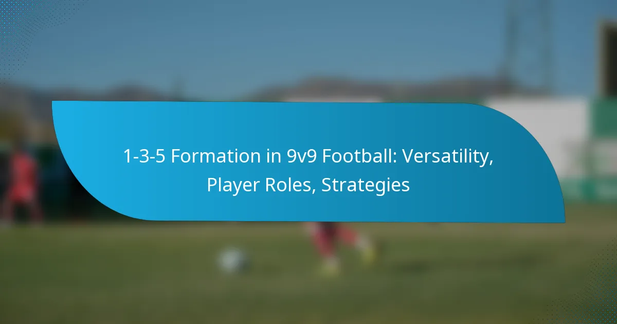 The 1-3-5 formation in 9v9 football emphasizes versatility and teamwork, assigning distinct roles to each player. This structure typically includes one goalkeeper, three defenders, five midfielders, and no traditional forwards, allowing for fluid movement and dynamic play.
