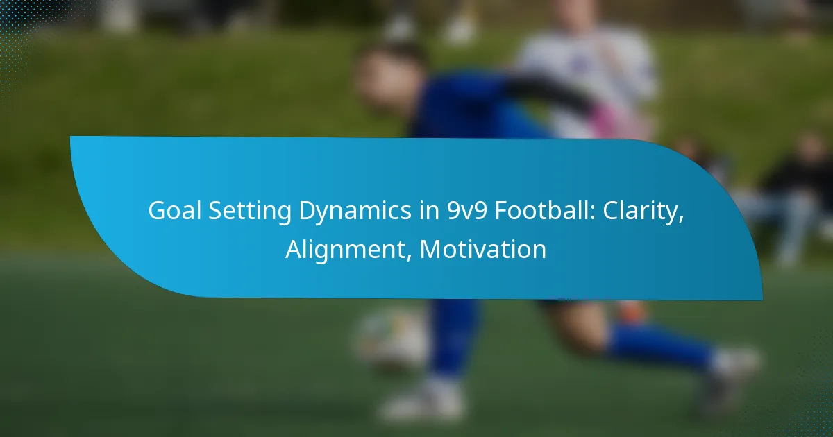 Goal setting in 9v9 football involves defining clear objectives that enhance team performance and individual player development. Key components include clarity, alignment, and motivation, which together create a structured approach to achieving success on the field.